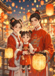 Một nhà ba người vui vẻ đoàn tụ.